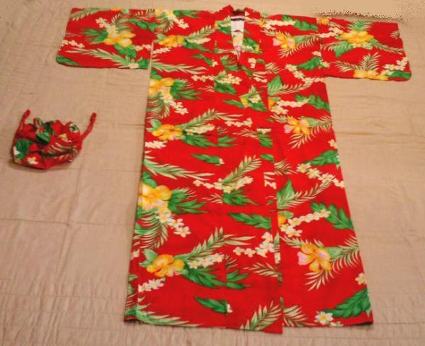 - ■未使用品:Desperado ハイビスカス柄の浴衣 同柄巾着付 (Dm587)