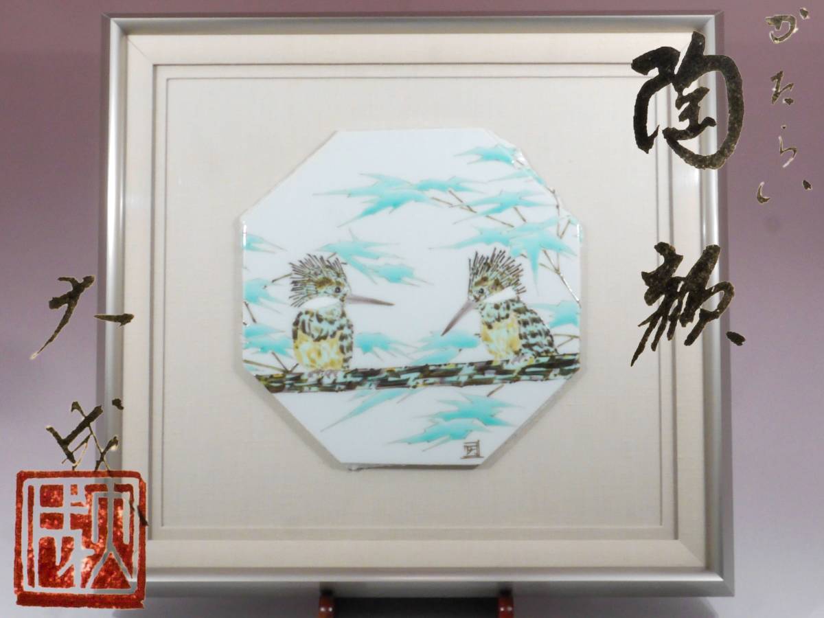 - 【値下げ交渉有り】 内閣総理大臣賞受賞 名工 山岸大成 造 秀逸作 色絵 山蝉文 銘【かたらい】 金銘 陶板額 額装付