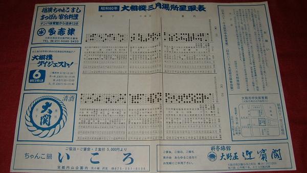 - 昭和60年 大相撲三月場所星取表 大阪場所 1枚 F1
