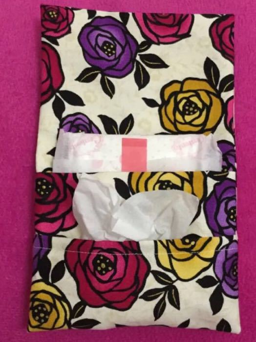 > ティッシュケース ポケットティッシュケース カラフルローズ バラ柄 薔薇柄 ばら 2色 外出用品 ハンドメイド ティッシュケース