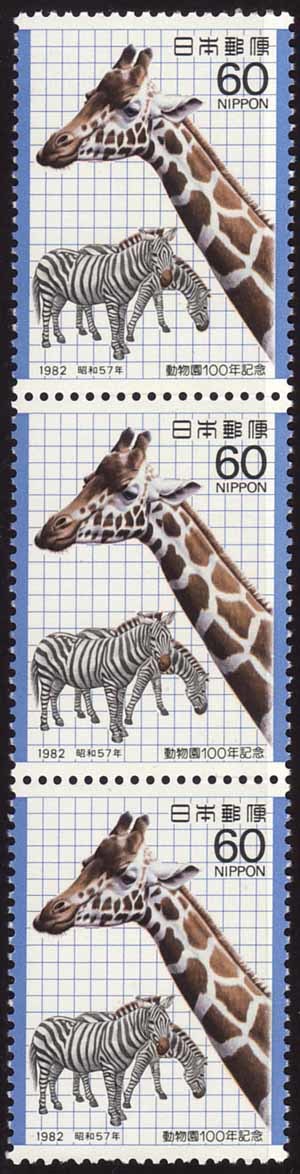- ◆縦・連刷◆キリン&シマウマ『動物園100年』記念切手☆1982年発行【未使用】送料85円~