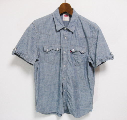 > Levi's リーバイス マチ付き・ウエスタンヨーク・赤耳 半袖 シャンブレーシャツ S ヴィンテージデザイン