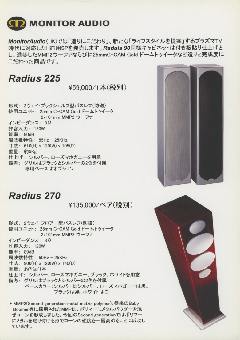 > Monitor Audio Radius225/Radius270のカタログ モニターオーディオ 管2563