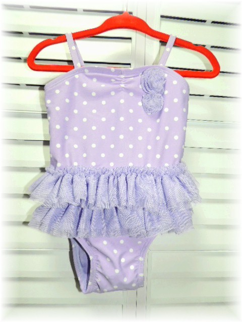 - GAP チュールフリル・コサージュ飾り ワンピース水着 6-12M ラベンダー×水玉
