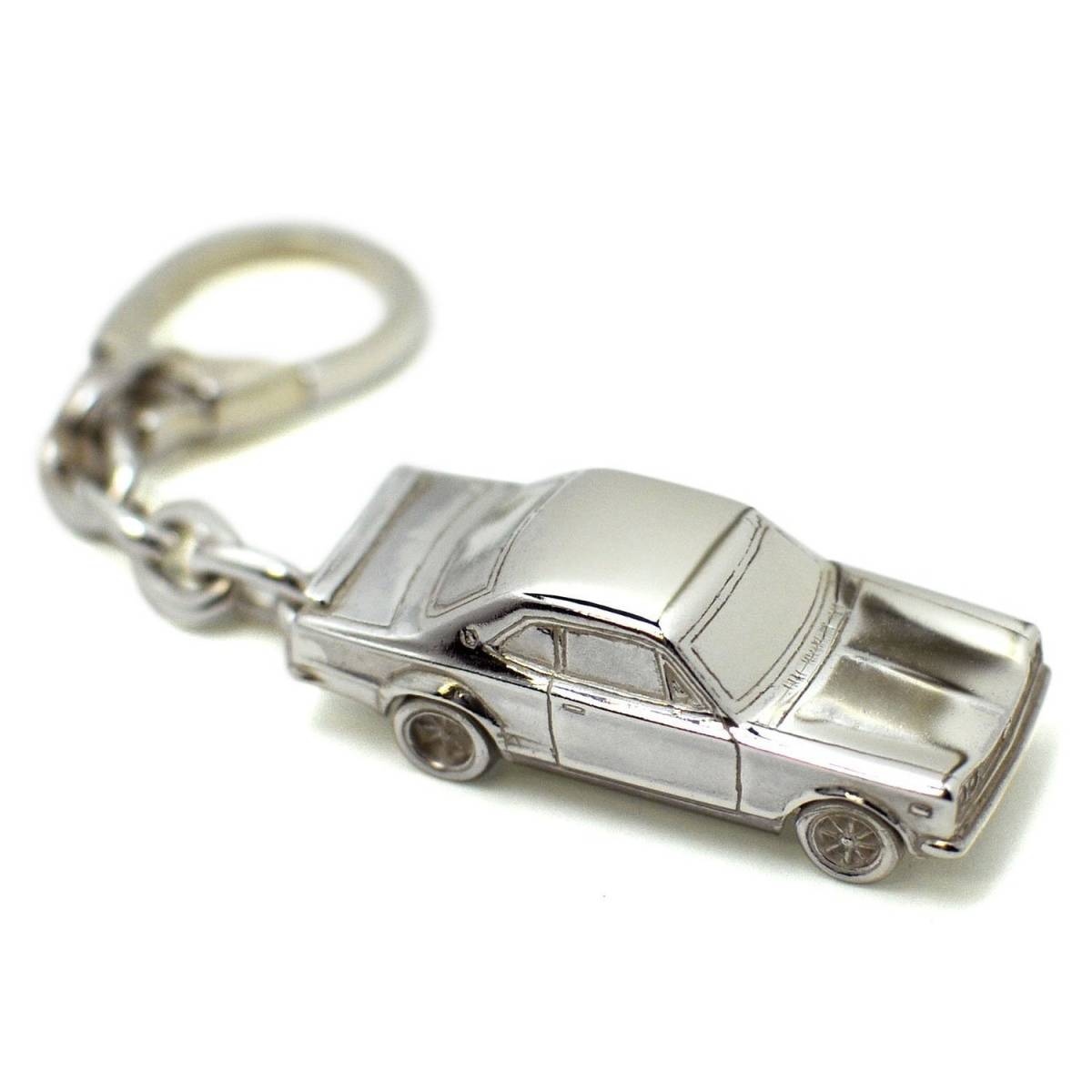 > 送料無料★彫金職人のハンドメイド純銀シルバークラシックカーキーホルダー スカイライン 2000GTR★ポリッシングペン付