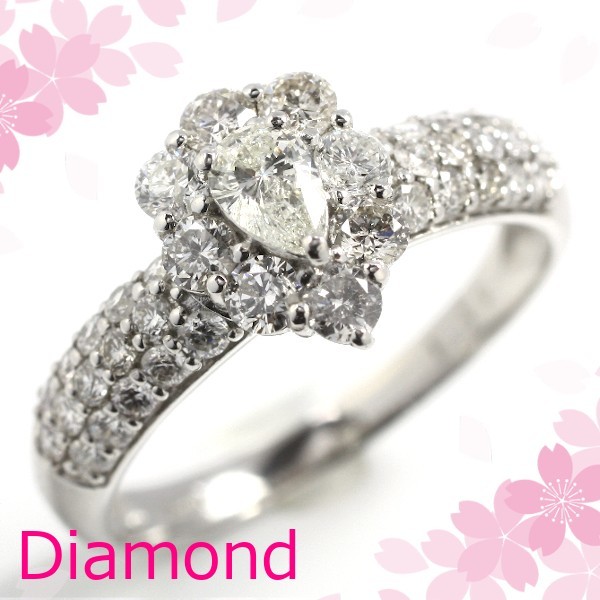- 【早い者勝ち卸特価】【新品即決】PT900ダイヤモンド1ct ダイヤたっぷり豪華デザイン ペアシェイプ プラチナ 4月誕生石 13号 DT119