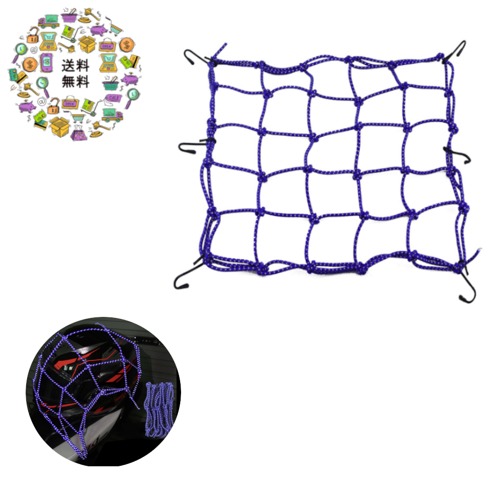 - 【ブルー】バイク用 ツーリングネット 40cm