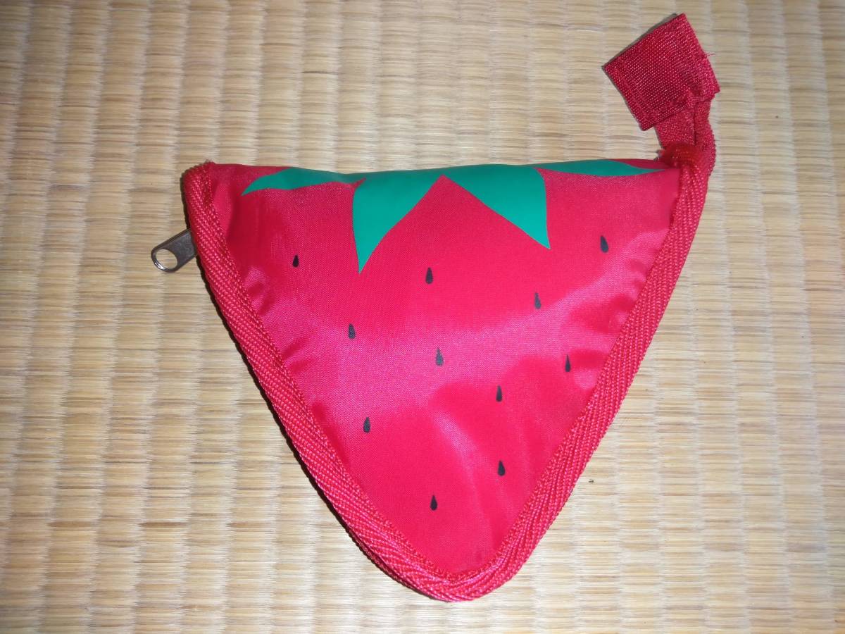 - 【新品未使用】苺模様のビーチバック(チャックで閉めてコンパクトになっている)