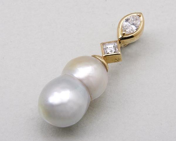 - 《質屋出品》k18★双子のアコヤ真珠+ダイアペンダントトップ★C-2054