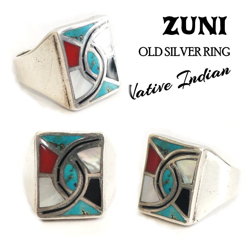 > ヴィンテージ ZUNI シルバー ターコイズ パール インレイ ネイティブ リング 指輪 31号 アンティーク 希少 レア アクセサリー USA