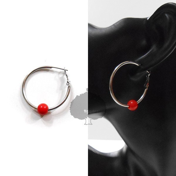 > YGG★新品 g-dragon 赤 ワンボール付き フープピアス シルバー×赤 レッド 小タイプ シルバー 銀 ジヨン 1個 片耳