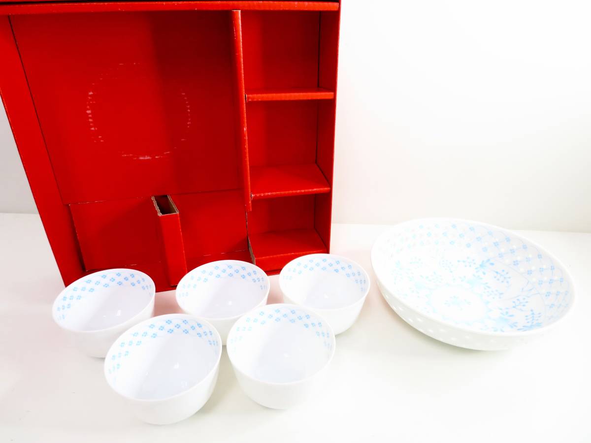 - 未使用品▲陶彩 茶菓揃 茶器 お茶呑茶碗 湯飲み 湯呑み 5客セット 菓子鉢 菓子皿 菓子器 箱あり 管理2008 V-2