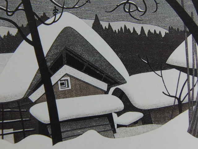 - 斎藤清、【会津の冬(100)三島町 大石田】、希少な大判額装用画集より、美品、新品額装付、送料込み