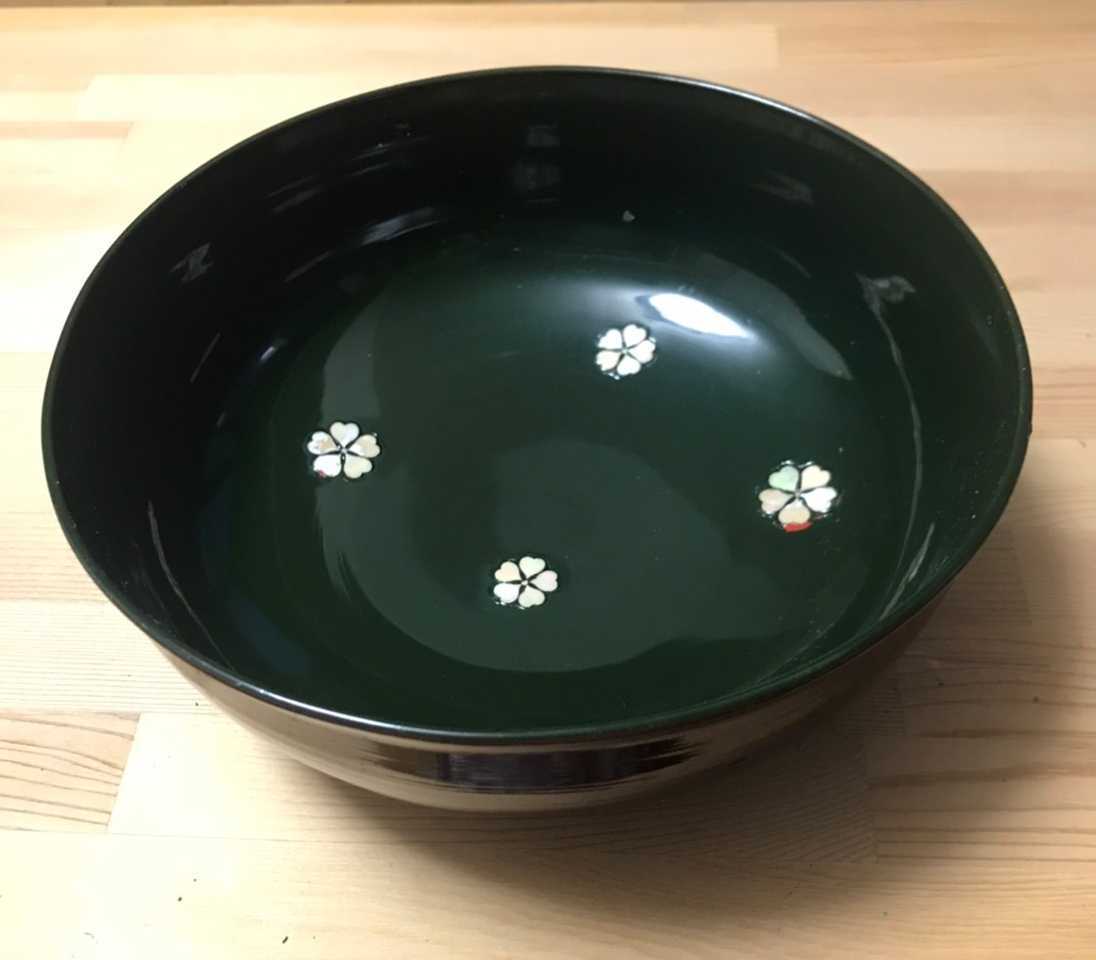 - 【漆器・蒔絵】漆塗り鉢 貝象嵌 桜文 中古品