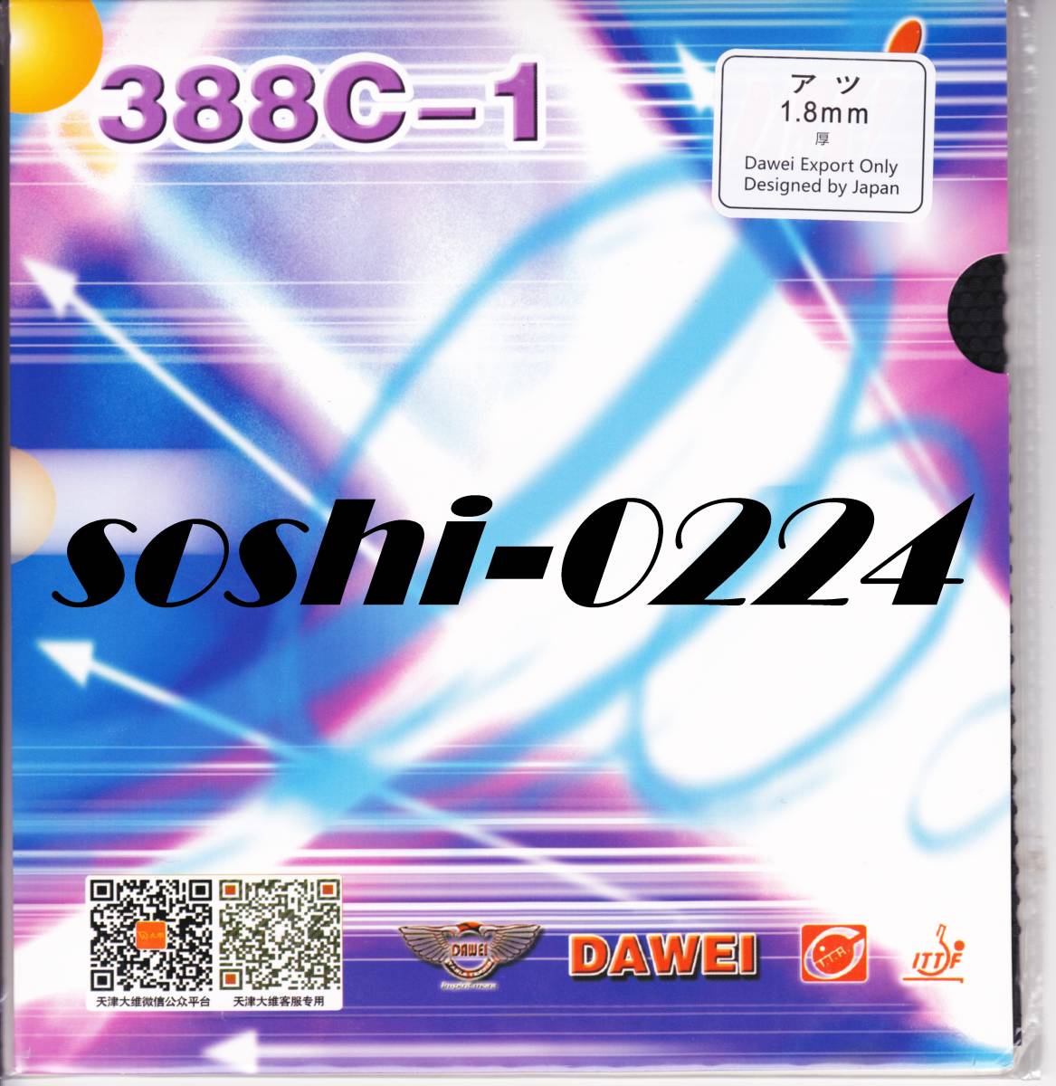 - DAWEI/大維★388C-1★黒/厚★1.8mm★変化系表★弾まない表で厳しいコースを突いたコントロールと回転変化で前陣攻守型向け!