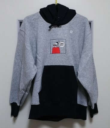 > 限定品 GU Snoopy プルオーバー パーカー グレー×ネイビー 『フライングエース』 前プリント M・身幅約57cm※未使用/タグ付き/2020年製品