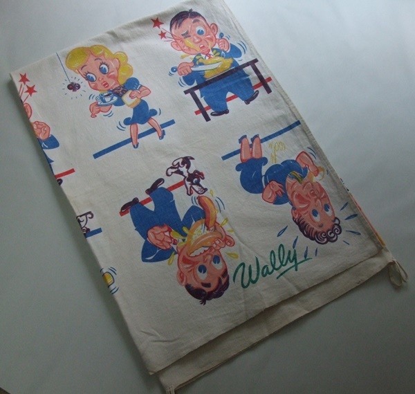 > VINTAGE 1960年代 wally キャンバス(帆布)生地 ファブリック ビンテージ・アメリカ古着 60s バナー Nutty Mad・Weird Ohs