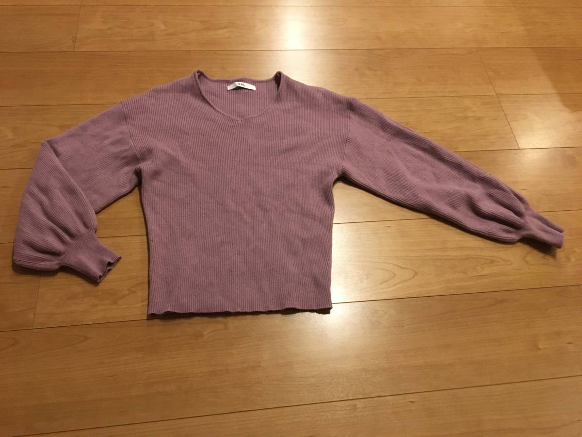 - グレイル GRL ボリューム袖 美スタイル リブ 長袖 ニットソー ニット カットソー F ペールパープル