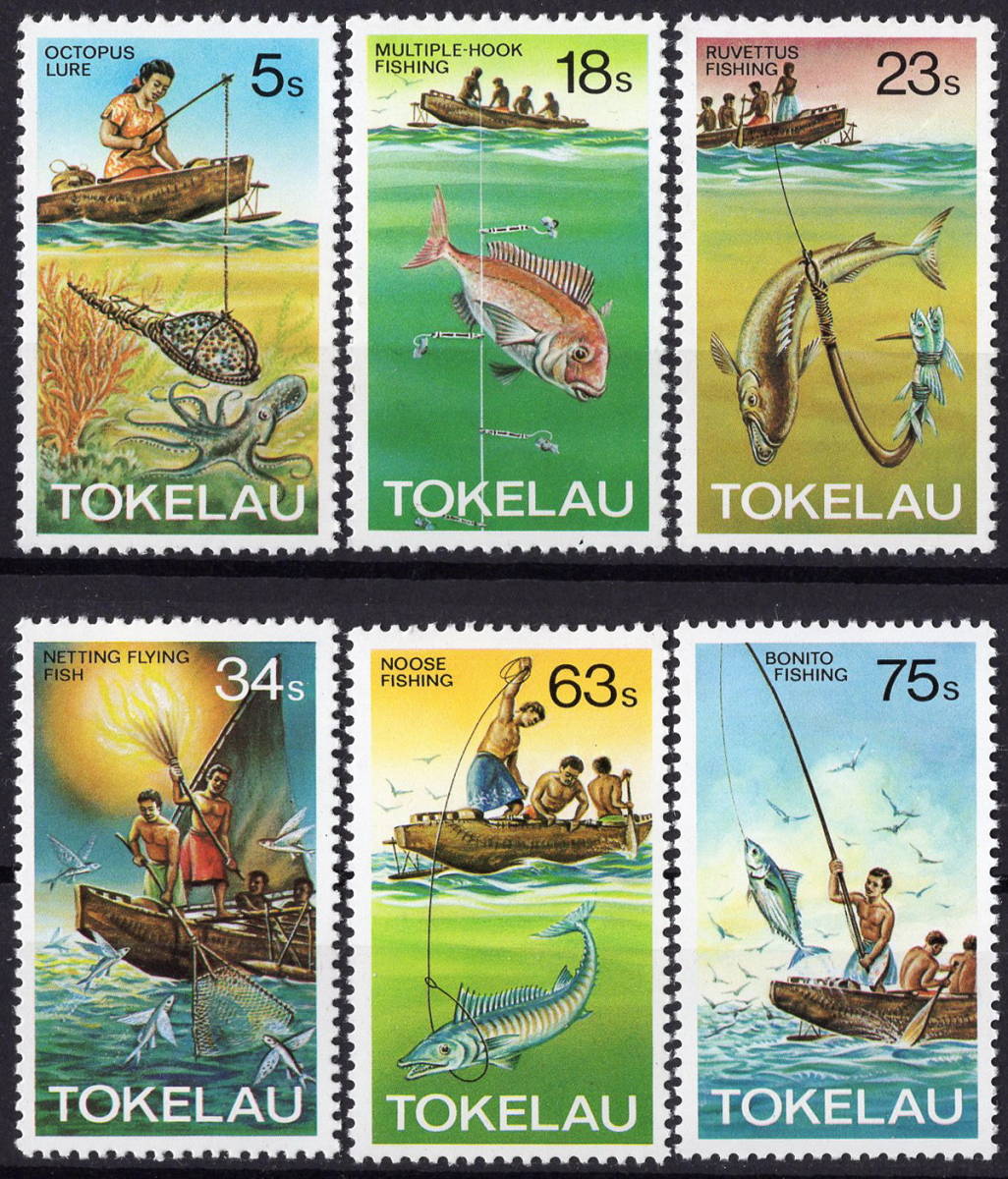 - ★1982年 トケラウ - 「釣り方」 6種完 未使用切手(NH)(SC#85-90)★VB-214