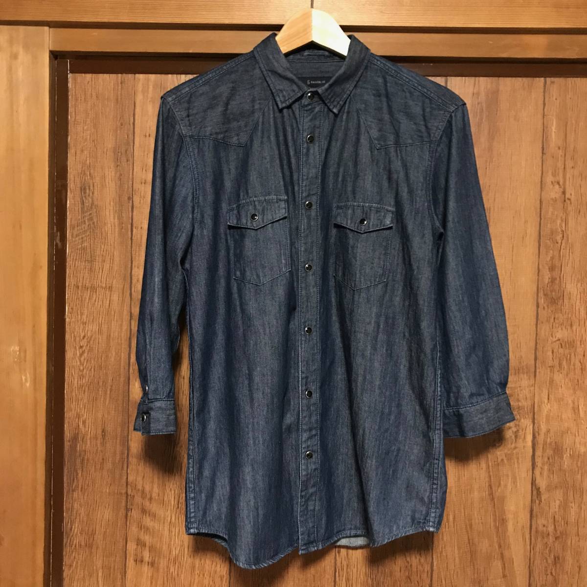 - Lサイズ デニム シャツ メンズ 男性 青 ブルー 七分袖 カジュアル RAGEBLUE レイジブルー シンプル おしゃれ 可愛い ポケット