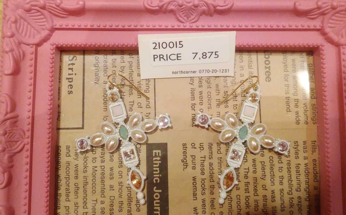 > 即決☆定価7875円!! ノースコーナー パール&パステル系ビジュー ロザリオ ピアス♪クロス 十字架モチーフ ホワイト系