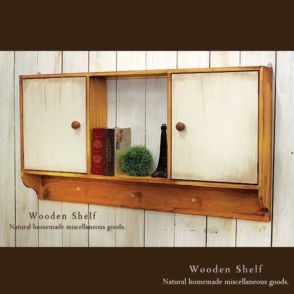 > [送料無料]ハンドメイド アンティーク風 扉付き シェルフ 木製棚 ナチュラル