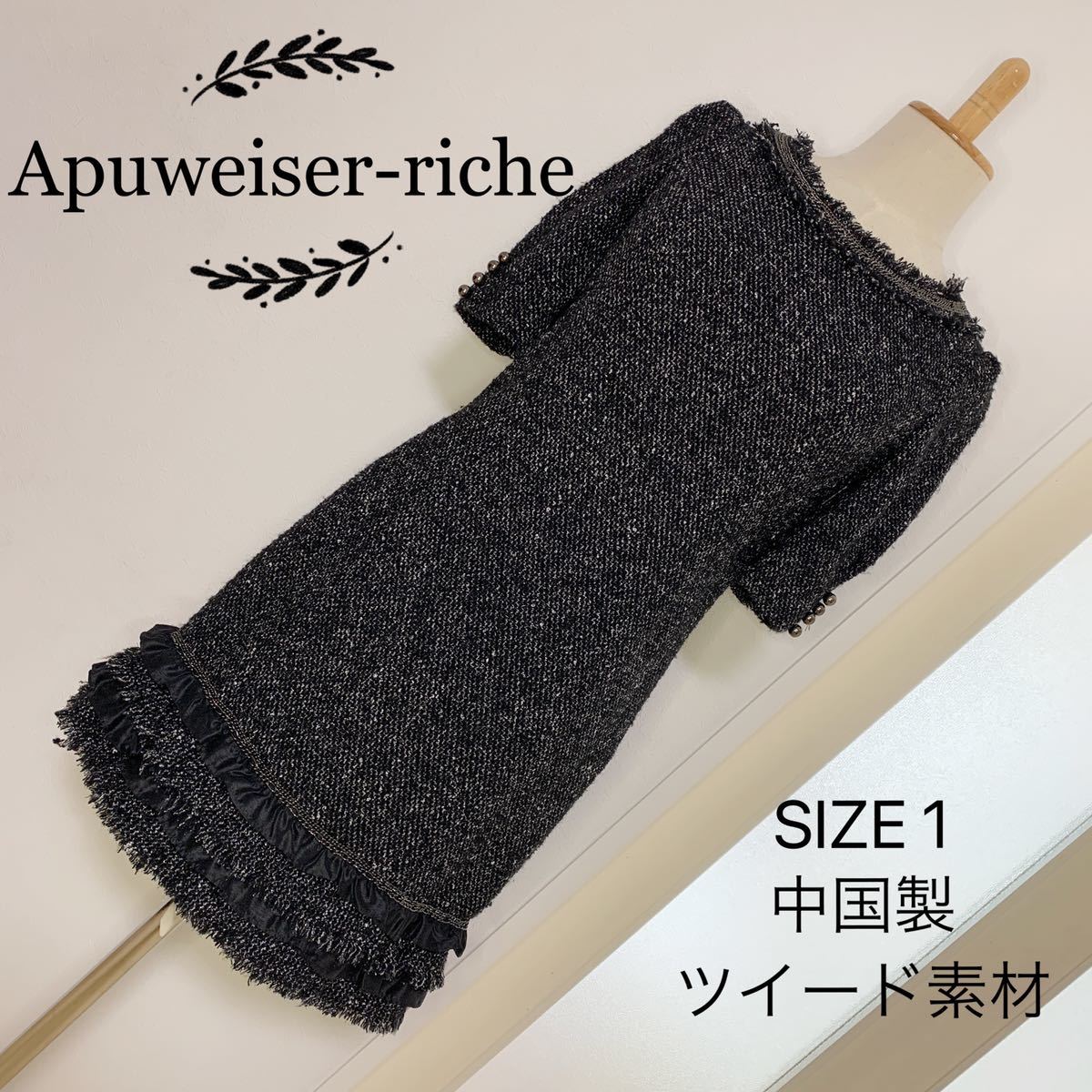 - Apuweiser-riche ツイード素材 ワンピース 装飾チェーン