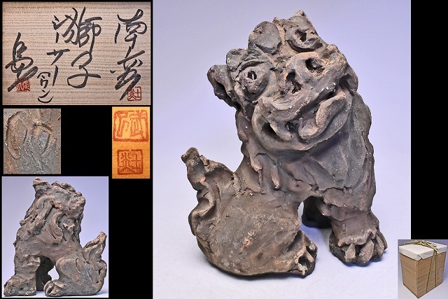 - 島武己 ★ 南蛮獅子シーサー (ウン) ★ 共箱共布 ★希少★ 壺屋焼 小橋川仁王 窯 小橋川永昌 薫陶 ★ 琉球南蛮 荒焼 置物 細工物 島武巳