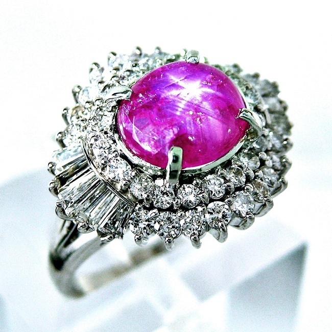 > Pt900 ★リング パープル スタールビー2.46ct 7月誕生石 ◇ダイヤモンド1.18ct 4月 ●13号 ◆ソーティング付き 【中古】/10020813