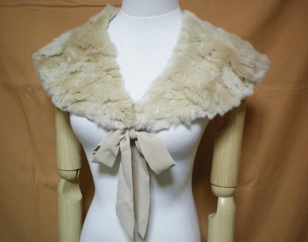 - 組曲プリエ★レッキスファー★ティペット★新品★ショール★ケープ★ベージュ