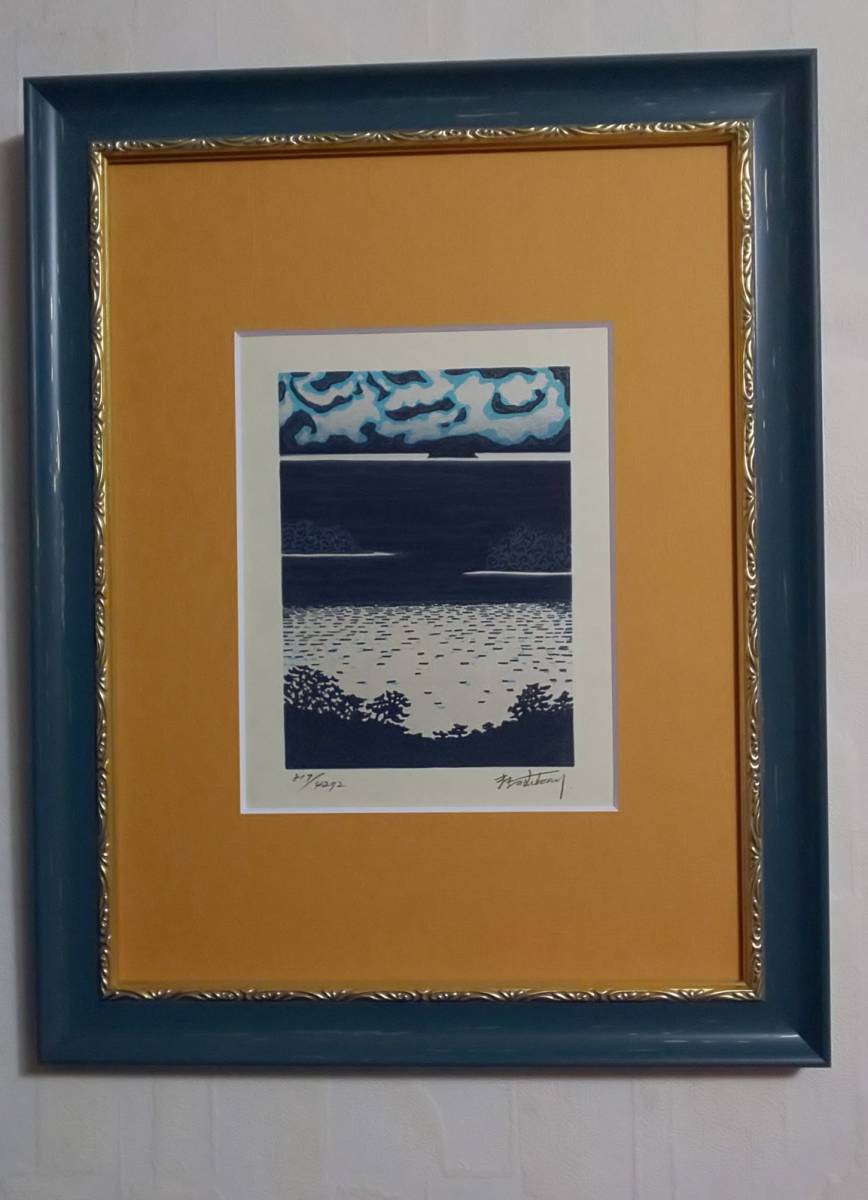 - 世界の牧野宗則 本格木版画「光る海Ⅰ」6版9度摺り伝統和紙「越前烏の子」1983年10月制作