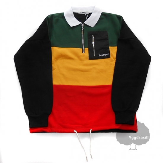 > YGG★襟付き フロントジップ トップス 緑黄赤黒 L ジョングク BTS 新品 ユニセックス 厚手 シャツ メンズ レディース
