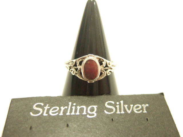 - 横浜最新シルバー 925銀ピンキーリング♪魅惑の中世柄 朱色 6号 送料220円ξgRξ ξ4s