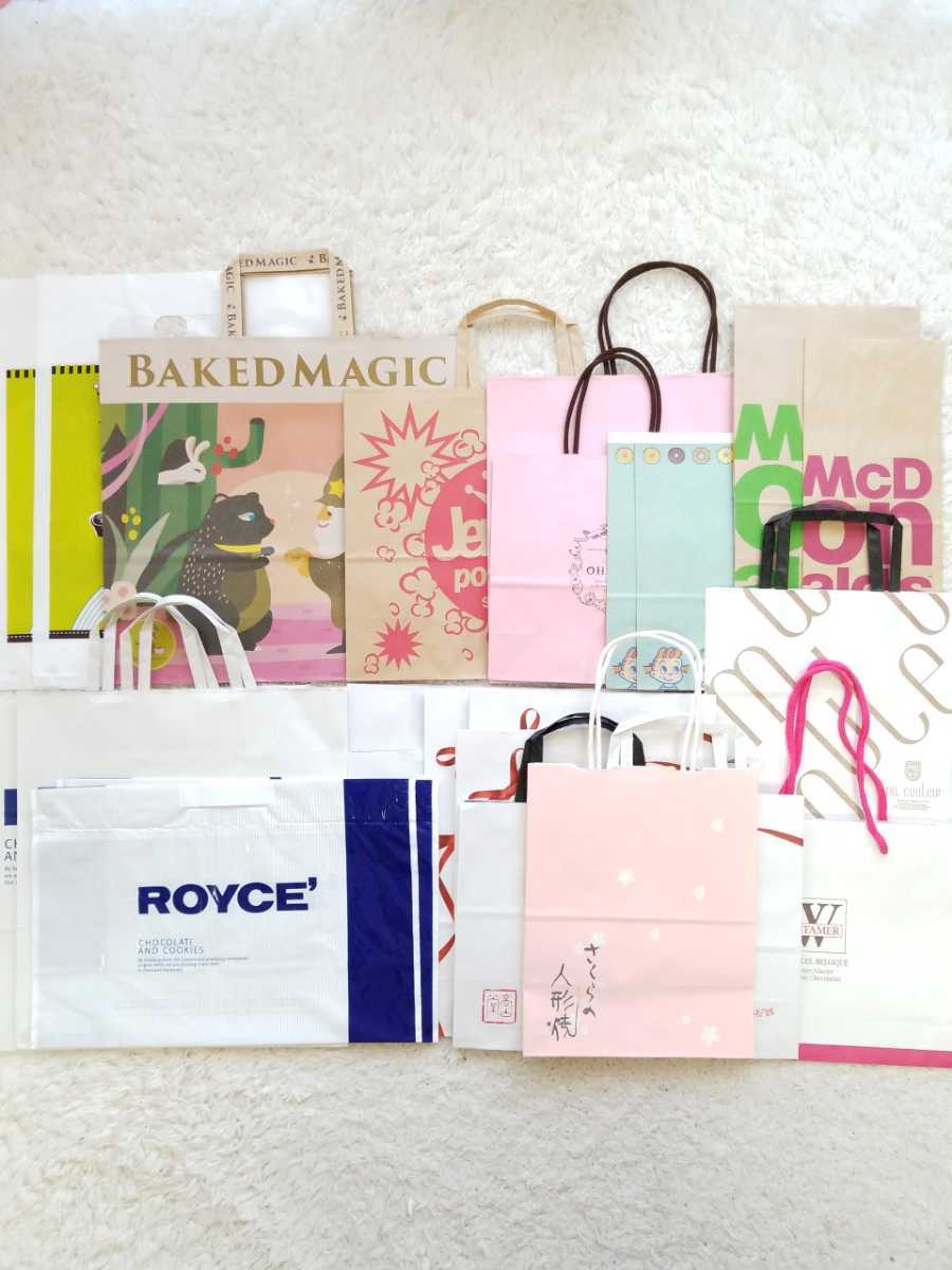 - ☆新品&美品全国銘菓ショップ袋25枚set手提げ袋ショッパー紙袋ロイズ銀座コージーコーナーWITTAMERミスドOHZANジェリーズポップコーン他☆