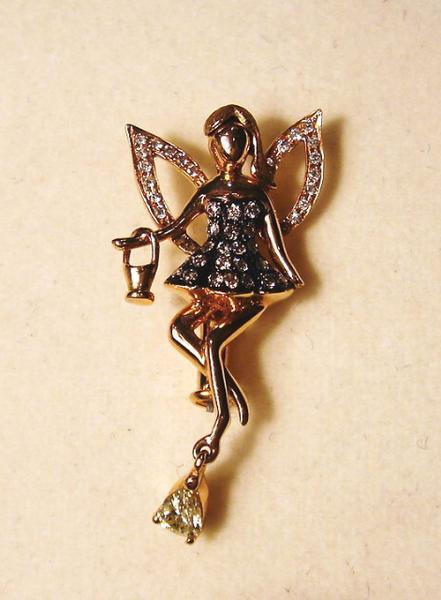 - B130:K18PG イエローダイヤ・ブラウンダイヤ ペンダントブローチ