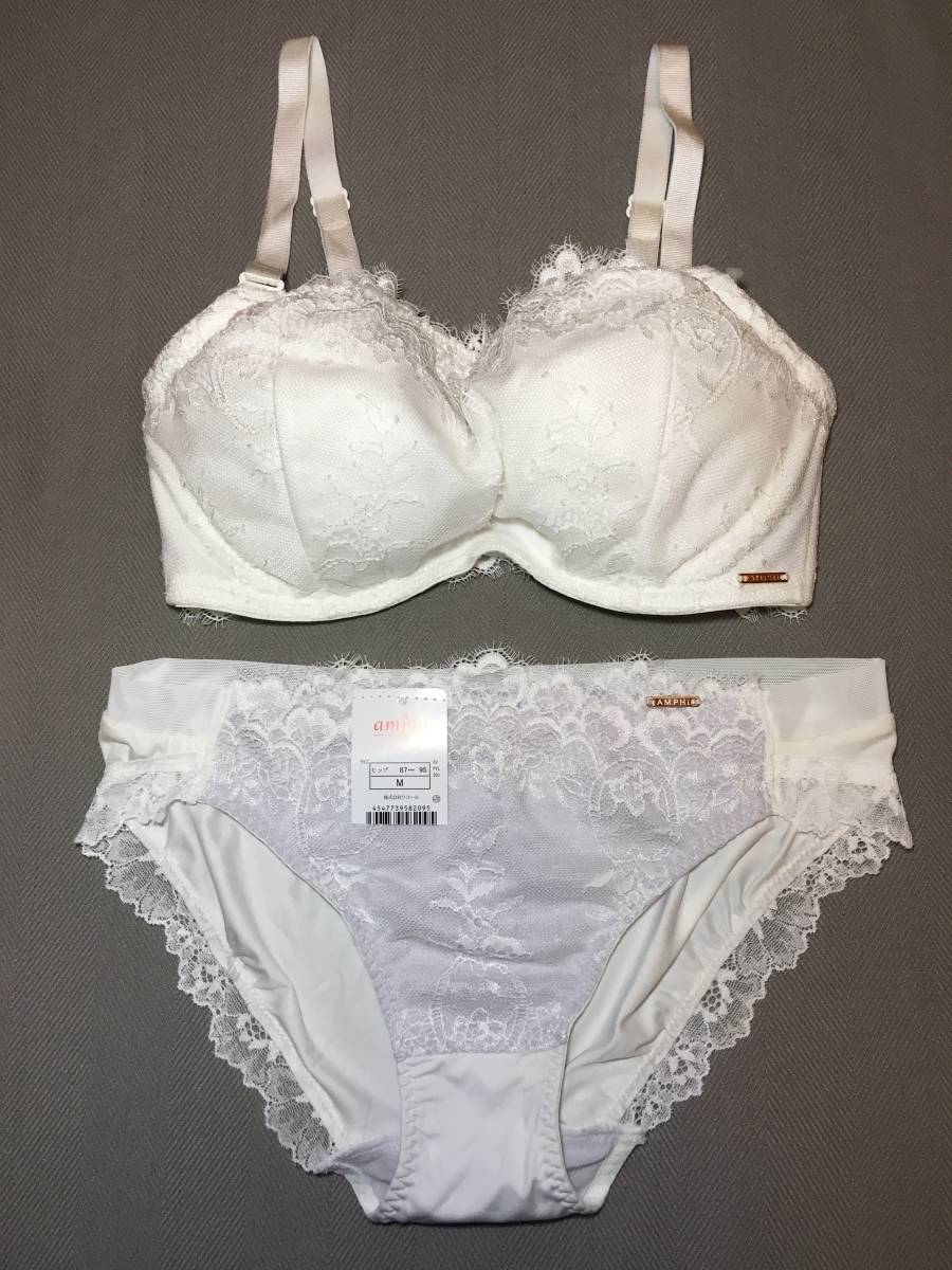> 定価7128円 新品 タグ付き ワコール アンフィ amphi D65 M レース ブラジャー ショーツ 上下 セット パンツ ホワイト グレー