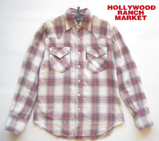 > 美品!!ハリウッドランチマーケット H.R.MARKET*チェック柄長袖ウエスタンシャツ 1 実寸S 白×グレー×ピンク ハリラン 聖林公司