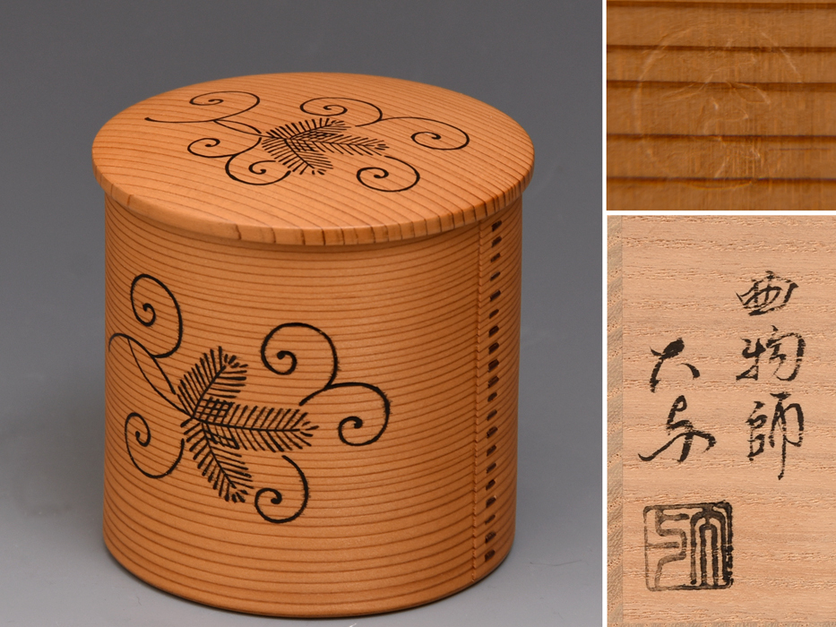 - 松唐草 曲茶器(棗)内金 曲物師 六代 藤井大与(造)共箱 共布 茶道具 現代工芸 木工芸 未使用 z0168e