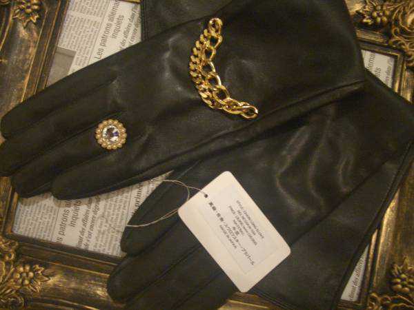 > 即決☆未使用☆定価18900円☆ノースコーナー☆牛革 チェーン&ビジュー付き ロング手袋 ブラック フォーマル パーティー 定形外