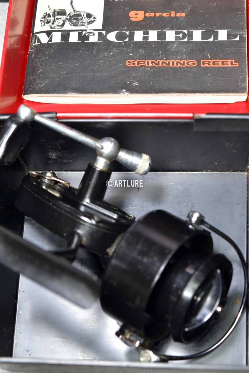 - VINTAGE MITCHEL GARCIA300 SPINNING REEL,,MADE IN FRANCE,WITH SPARE SPOOL; ORIGINAL BOX,