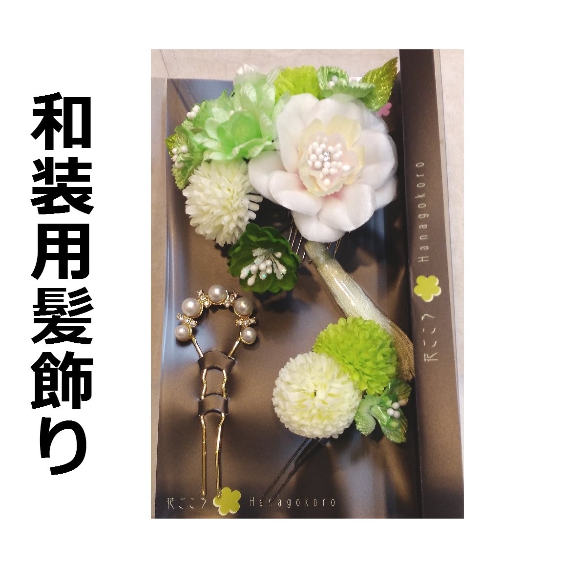 - 髪飾り 成人式 卒業式 ac319 花 緑白 ドレス 和風 3点セット 新品 送料込み