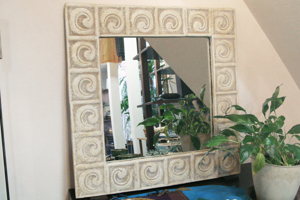 リゾートホテル等で使用されているバリ島のタイルメーカー、ONE WORLD製ミラー/鏡。 ※ご購入をされる前に ・この商品はデリケートな性質上、一度お送りすると事故・不良品以外はキャンセル・返品ができない場合がございます。ご購入をされる前に少しでもご不安な点やご不明な点がある場合は、必ず当店までお問い合わせください。・詳細な製品画像が必要な場合は、ご遠慮なくお申し付けください。 ・ミラー部やフレーム部に細かい傷などが見られることがございますが、ハンドメイド(手作業)製品である以上、限界があることをご了承ください。 - バリ島 ONE WORLD - ONE WORLD社:陶器メーカーのジェンガラ・ケラミック社のデザイナーだったオーストラリア人のPhilip Lakeman氏らによって設立された陶器製タイルメーカー。バリ島の伝統的なモチーフのデザインと独自に開発した特殊な技法による風化したようなレトロ調の風合いを再現したタイルは、瞬く間に有名リゾートホテルなどで採用されるようになる。