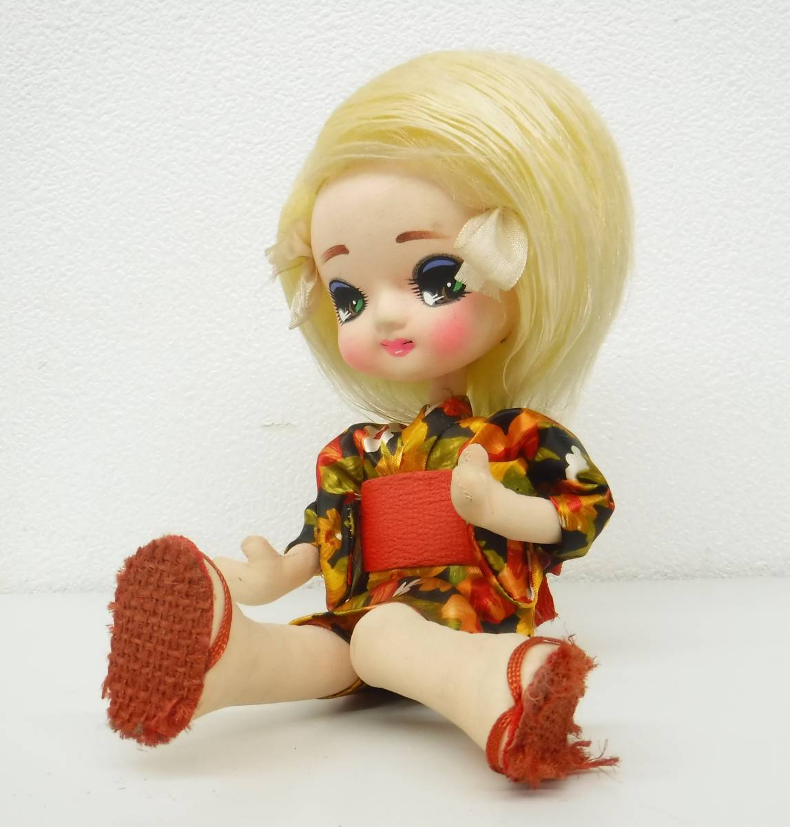 - 昭和レトロ 当時物 *レトロドール ポーズ人形 *お座り *金髪 和服 着物 KIMONO 草履 *ヴィンテージ アンティーク