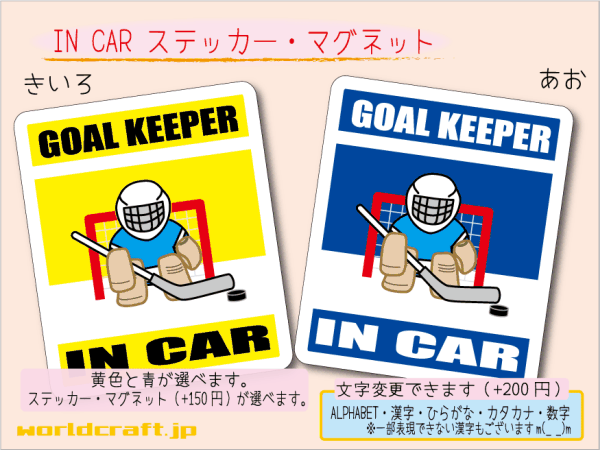 > ■_ IN CARステッカーアイスホッケー キーパー■ 1枚 色・マグネット選択可■車に乗ってます おもしろ 耐水シール☆_ot