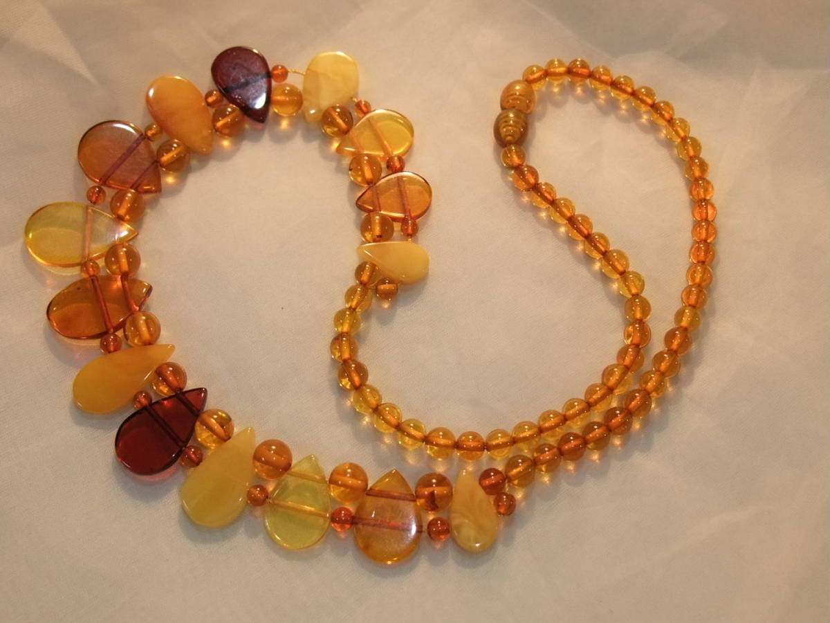 - 綺麗!!ハニカム蜜蝋色ルース入♪本琥珀リトアニア産バルチックアンバーの高品質ネックレス☆☆おー10