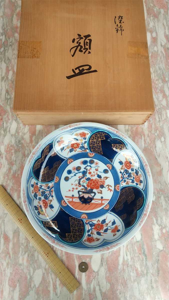 - 有田の古窯 岩尾對山窯 染錦 額皿 共箱 【直径30㌢高さ6㌢重さ1050㌘】