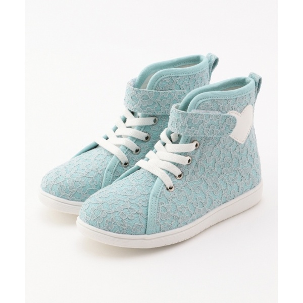 > 99 新品 ¥4389 組曲 anyFAM エニィファム カジュアル ハイカット スニーカー 19cm レース ハート シューズ 子供用 女の子 ブルー 水色 靴