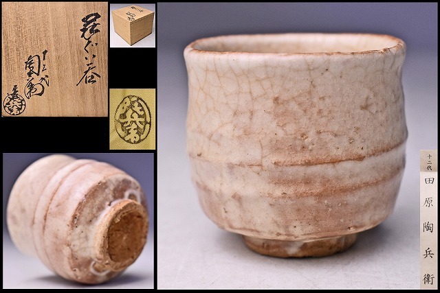 - 田原陶兵衛 12代 か ★ 萩ぐい呑 ★ 共箱共布栞 ★ 酒器 ★ 深川萩 ★