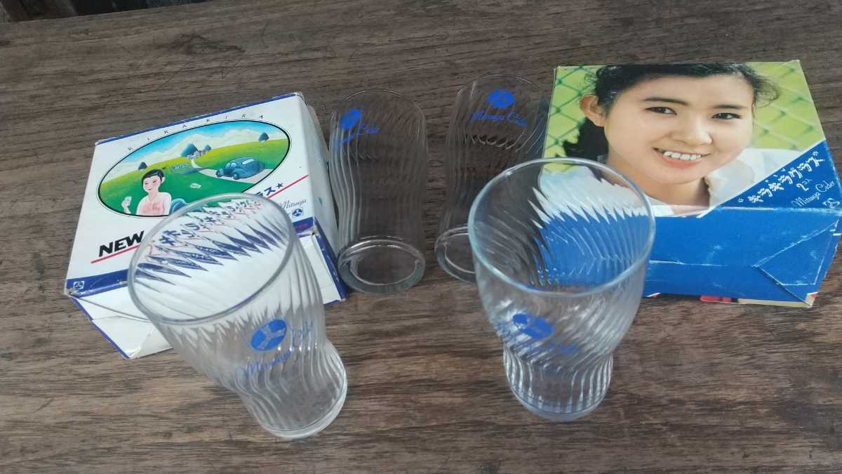 - 昭和レトロ 三ツ矢サイダー キラキラグラス 4コ 当時物 未使用 保管品 箱付き