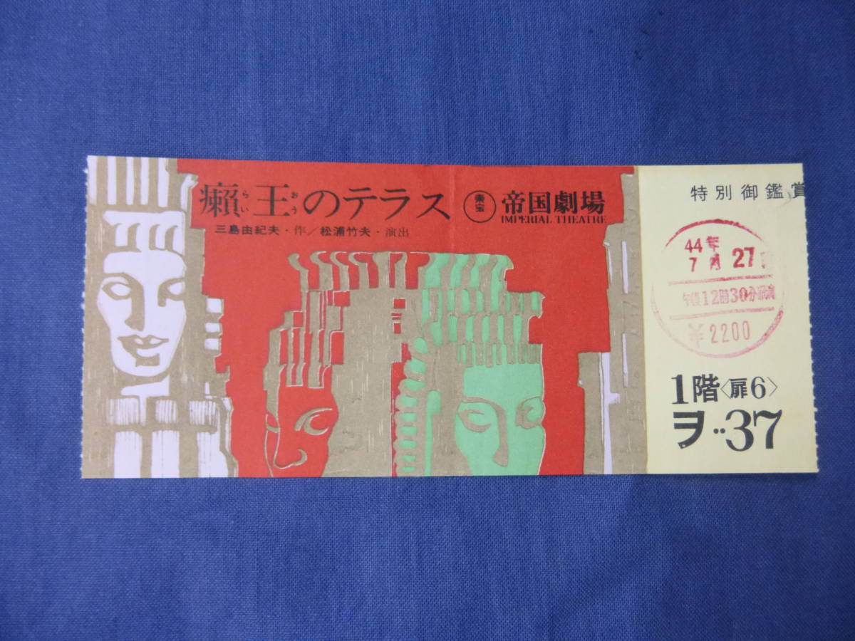 > ◆古い演劇チケット半券38「癩王のテラス ライ王のテラス」1969年/三島由紀夫/北大路欣也、岸田今日子、夏八木勲、山田五十鈴 帝国劇場